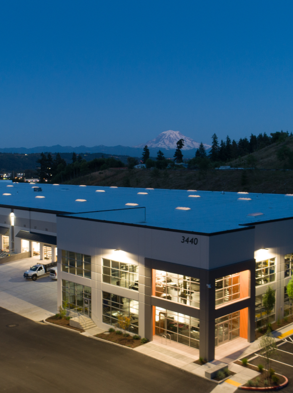 Our buildings feature low VOC materials to improve air quality, lots of natural light, "cool" roofs to reduce the heat island effect, and energy-efficient HVAC systems. Additionally we’ve reforested hillsides with over 18,000 trees and shrubs, replaced turf with drought-tolerant plants to decrease water usage, implemented LED lighting with occupancy sensors and incorporated truck charging infrastructure.